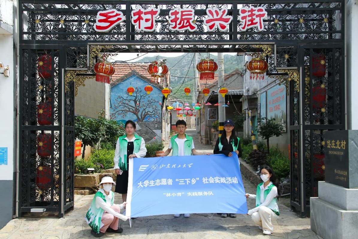 圖為林小青實(shí)踐團(tuán)在源泉鎮(zhèn)北崮山村鄉(xiāng)村振興街合影留念 通訊員 劉博 供圖