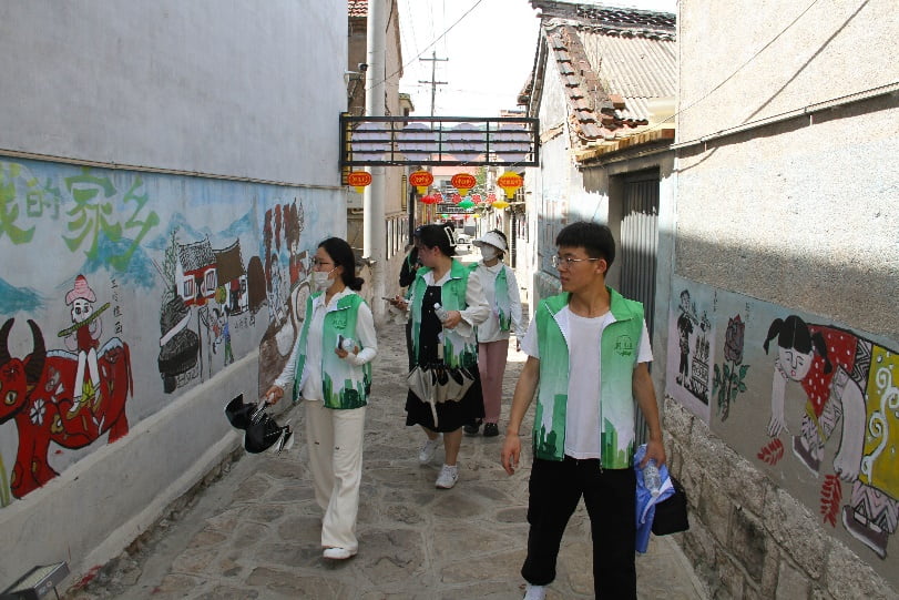 圖為實(shí)踐團(tuán)實(shí)地考察源泉鎮(zhèn)北崮山村鄉(xiāng)村振興街 通訊員 劉博 供圖