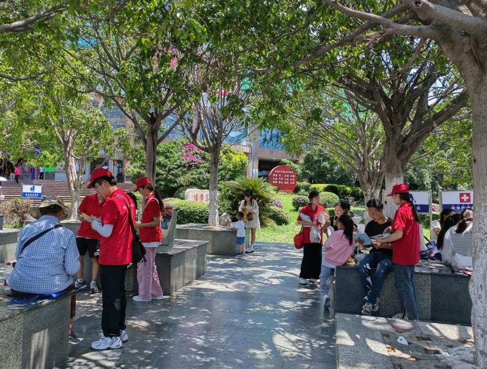 隊員向市民發放宣傳手冊以及科普防災減災知識