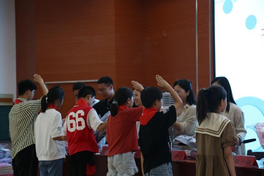 緊接著,學生代表季夢涵同學真誠地表示,他們將以實際行動揚起理想的風帆,勇往直前,努力學習,用優(yōu)異的成績回報關(guān)心和幫助他們的人。最后,各位領(lǐng)導和老師親自將物資發(fā)放到小朋友手中。