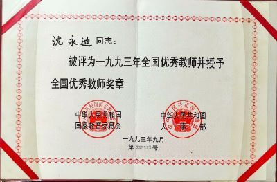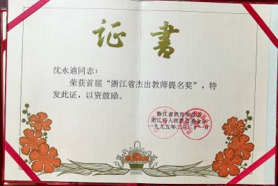 圖 3沈永迪“浙江省杰出教師提名獎”