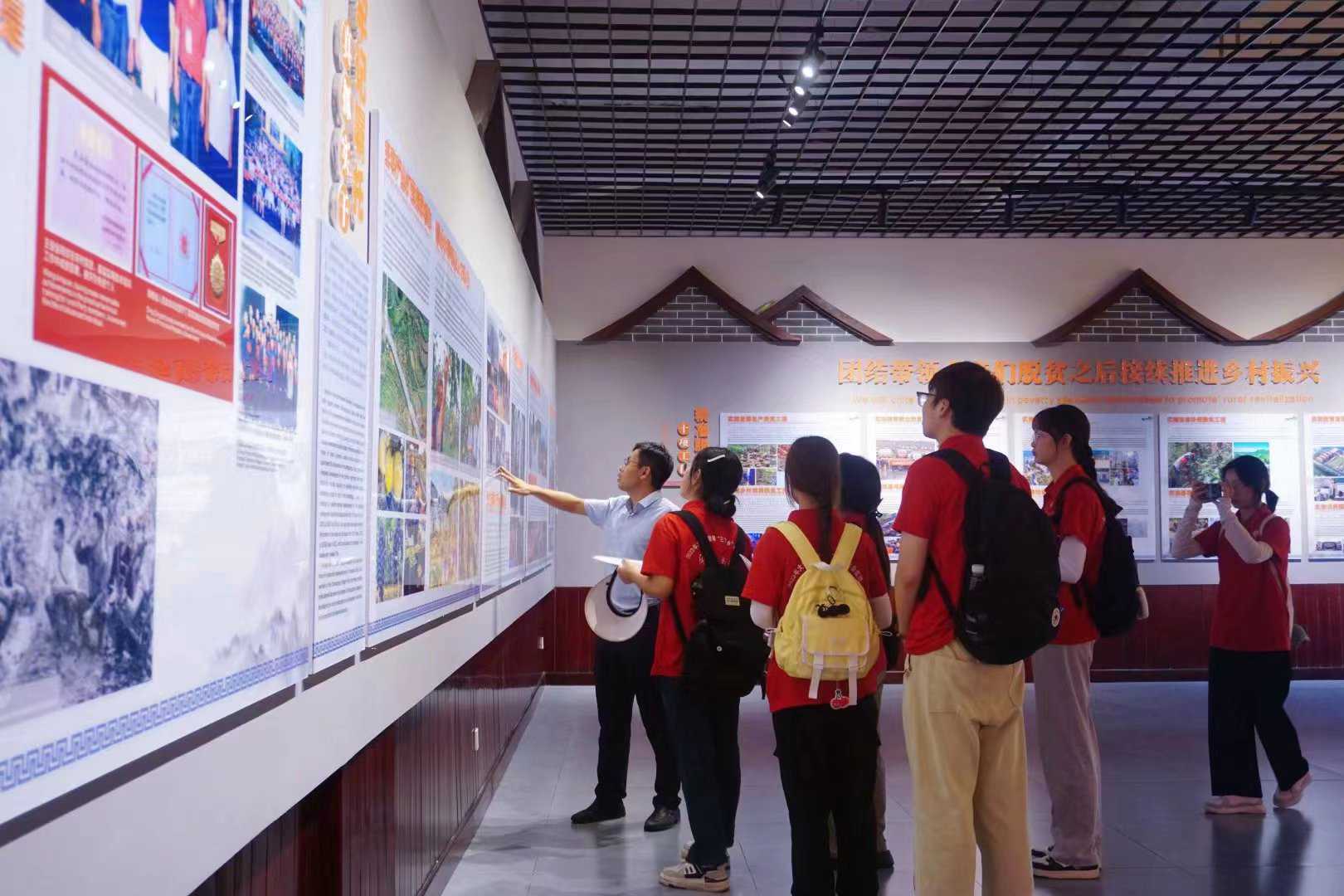 圖為菖蒲塘村唐金生書記帶領團隊成員參觀鄉村振興展覽館片段 通訊員 周思 攝