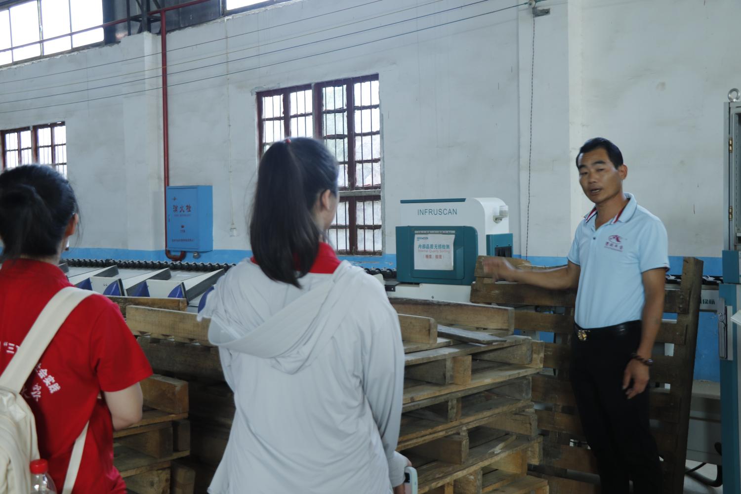 圖為劉廠長向調研團介紹初加工基本流程。戴美玲 攝
