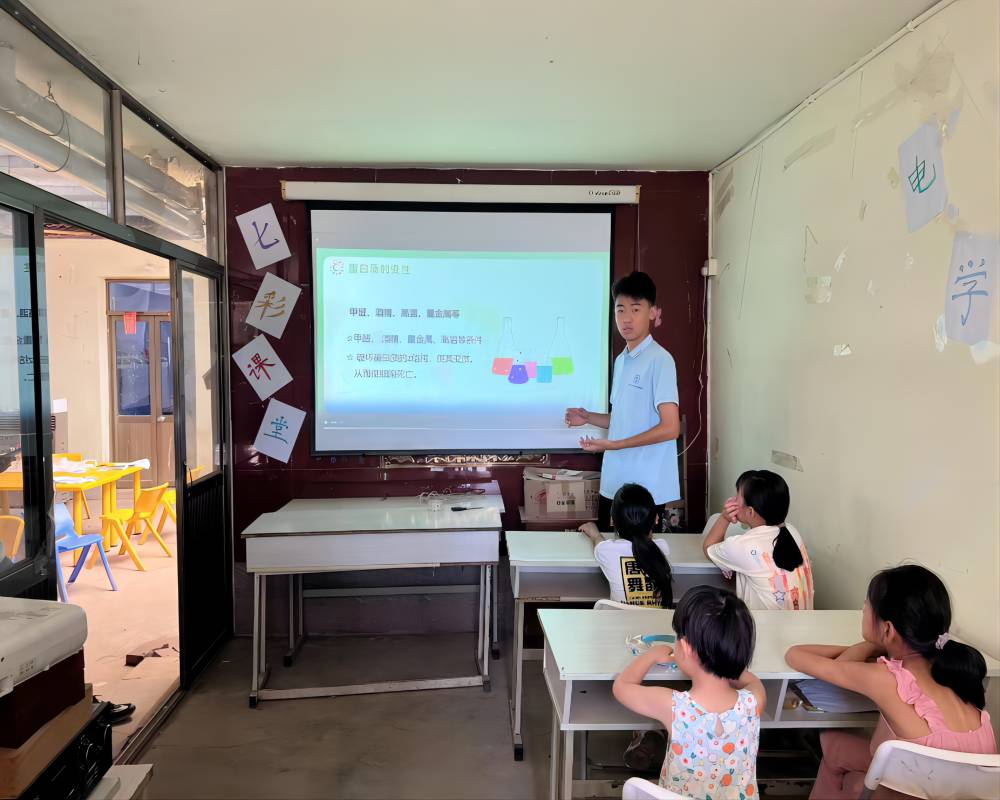 為通過趣味化的教學方式,激發孩子們對于化學科學的興趣,培養他們的實踐能力和創新思維,7月21日上午,“四葉草”暑期社會實踐團各支隊實踐小組于濰坊市安丘市后松園村成功開辦了一節生活中的化學課堂,為當地孩子們帶來了豐富的學習機會。此次活動由“四葉草”社會實踐團濰坊小組成員葛航進行詳細講解。