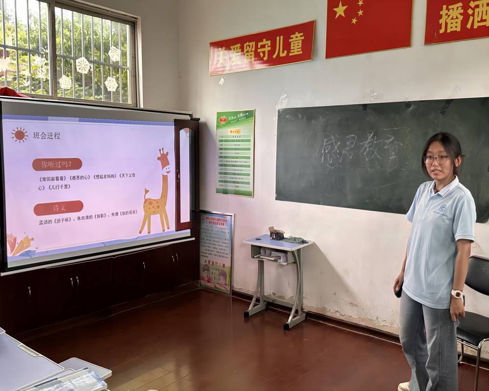 感恩是中華民族的傳統美德,是構建社會主義和諧社會的基礎。活動的開展讓學生們學會孝敬父母,懂得感恩,與他人和諧共處,用實際行動踐行中華民族的傳統美德。課程開始時,實踐團成員張靖涵向孩子們展示了一篇詩《游子吟》,由淺入深,用一首詩詞將孩子們帶入詩境,并由此引出此次授課的主題“感恩”。之后張靖涵通過生活中的小事來讓孩子們感受到“感恩”的力量:父母每日為他們做好的飯菜,同學之間的相互幫助,又或是身上整潔的衣物,這些小事都在提醒著孩子們美好生活的來之不易,孩子們也確切的感受到了感恩的重要性。