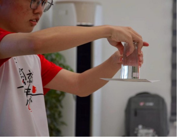 在這節物理小課堂上,朱老師和卓老師為同學們揭開了謎底,讓同學們對物理有了一個清晰的認知。實驗時間到。在兩位老師的示范與指導下,同學們動手做了一些有趣的物理小實驗。