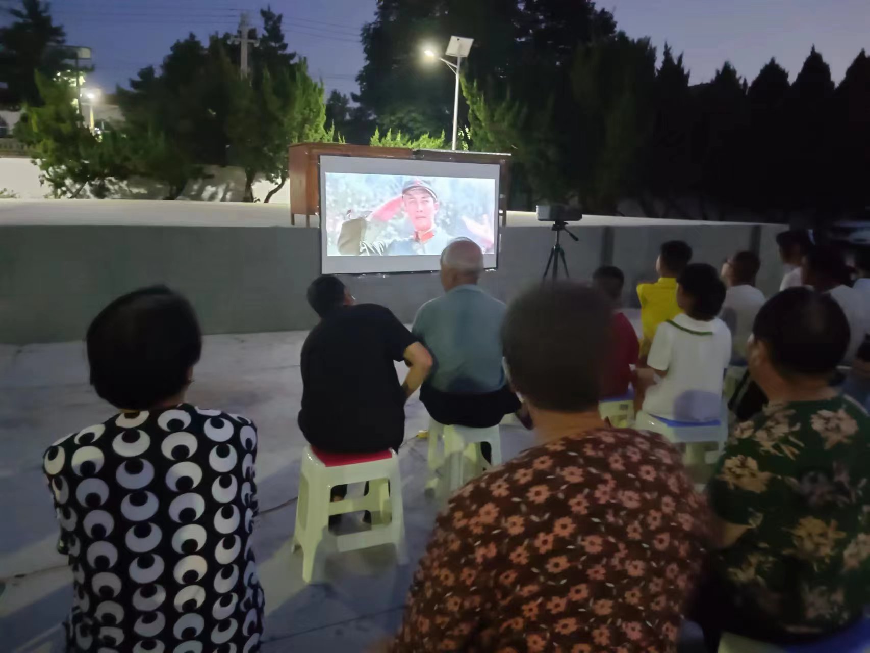 圖為在播放“高山下的花環”電影