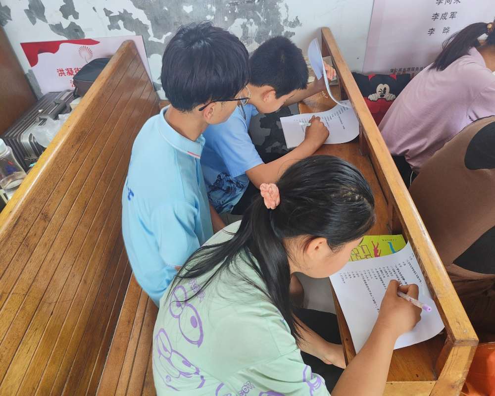 與村民交流結束后,隊長吳含帶領隊員們前往李家溝村委會,繼續展開學情調研。他們了解到,當地學生課程開展全面,學生德智體美勞全面發展,教育設施相對完善,學校也設有圖書館,平時學生很少使用電子設備。同時實踐隊員也針對學生學習和生活中的煩惱等問題進行討論,鼓勵學生們堅定信念,自立自強,不斷提高自身綜合素質,通過自身的努力讓未來變得光輝燦爛。