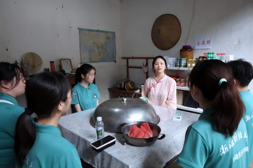 實踐服務團的第三站來到了達塘村“遇見確幸”民宿,拜訪了鄉村中的本土主播——徐露露。通過新媒體流量的力量,她為村里農戶宣傳銷售胡柚,曾創下一個月賣出6萬公斤胡柚的記錄,并且開辦民宿,推動鄉村旅游業發展,真正做到了直播反哺富鄉村,青春助農享幸福。