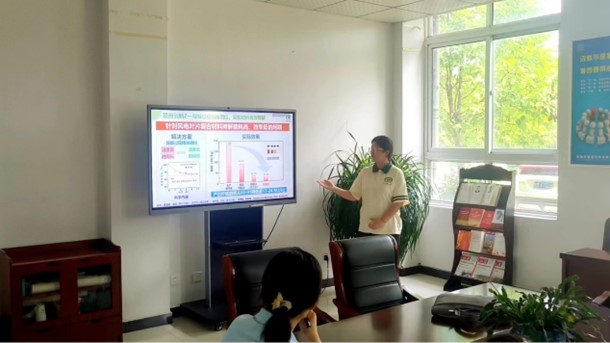 隨后,團(tuán)隊(duì)成員艾婧同學(xué)就團(tuán)隊(duì)在廢棄風(fēng)電葉片降解回收方面的相關(guān)項(xiàng)目成果進(jìn)行了匯報(bào),受到一致好評(píng)。眾博公司技術(shù)團(tuán)隊(duì)就該項(xiàng)目?jī)?nèi)容進(jìn)行了點(diǎn)評(píng),提出了建議,同時(shí)祝賀團(tuán)隊(duì)在安徽省第九屆“互聯(lián)網(wǎng)+”大學(xué)生創(chuàng)新創(chuàng)業(yè)大賽獲得優(yōu)異成績(jī)。