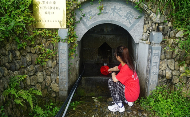 工作人員帶著大家來到了本地最著名的紅豆杉泉旁,泉從山上來,清冽甘甜,冰涼清透。工作人員小哥舀了一碗,一邊喝著,一邊告訴團隊成員這就是平常他們喝的水,用的水,轉手就又舀了一碗遞給大家品嘗,大家接過喝了一大口,大自然的禮物冰冰甜甜,不由得自己再去舀一碗。這里沒有污染、人與自然和諧共生,相互依存,相互滋養。小哥告訴大家:“我們不再是自然的征服者,而是與自然和諧相處的伙伴。”親身體驗后,大家更加堅定了中國式現代化人與自然和諧共生發展道路的信心。