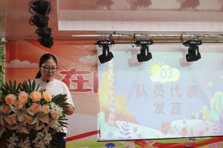 隨后是隊員代表發言環節。摘星隊的各個板塊隊員代表都總結了這六天以來的板塊任務與活動成果,并表達了對學生們的由衷感謝與美好祝愿。其中,宣傳板塊的朱馨語表示:“雖然沒有直接參與到課程教學,但也實實在在地用我們手中的相機記錄下學生們的風采,由衷希望學生們能夠從這次夏令營中體會到學習的樂趣。”