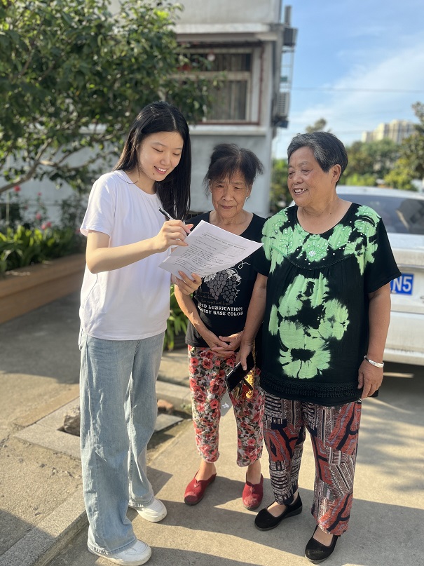 活動開始前,志愿團隊成員查閱了大量資料,對鼓樓區當地老年人生活現狀和對數字產品及服務的了解程度有了初步認識。考慮到老年人感官衰老、思維滯后等生理障礙的實際問題,團隊成員前往鼓樓區各街道線下發放紙質調查問卷,實地考察、走訪,并耐心指導參與老年人填寫,了解到了當地老年人對融入數字生活的意愿大小、在上網過程中遇到的最大問題、對數字產品和服務的了解程度等問題。在走訪過程中,接受調查的老年人向團隊成員講述了許多在使用數字產品及服務的過程中親身經歷的故事;同時,有不少受訪老年群眾向團隊表示本次調研活動中的問卷問題的設置切實反映了他們在實際生活中遇到的苦難。因此,志愿團隊成員們更加明確了助力老年人融入數字時代對老年人及其家屬的日常生活起到了不可忽視的作用。