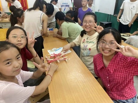 準備工作完成之后,同學們四人分成一組開始嘗試搭建筷子橋,同學們全都積極參與其中,實驗現場氛圍極好。盡管大家初次嘗試可能會有失敗與不足,但同學們耐心總結失敗經驗,四人小組團結協作,最終都圓滿完成了搭建筷子橋的實驗任務。