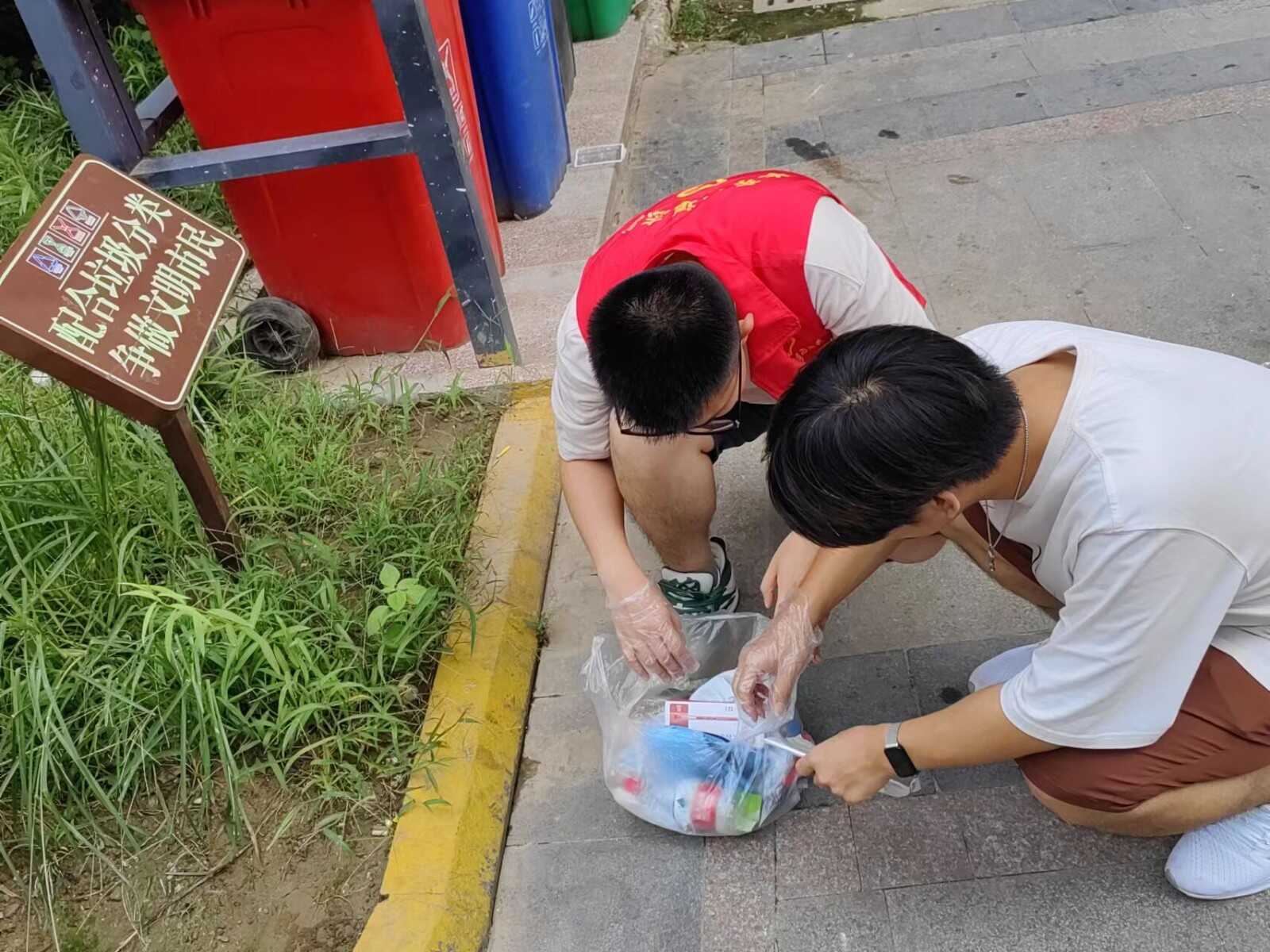#團團·行##2023年暑期社會實踐#【齊物類至,清泉汩汩】為進一步加大生活垃圾分類宣傳力度,提升社區居民對垃圾分類的知曉率及參與率,7月15日,南京工程學院計算機工程學院“垃圾分類暑期調研隊”走進江蘇省淮安市清江浦區水韻天成開展“垃圾分類進社區”主題活動,了解社區垃圾分類的政策以及開展的相關情況,學習智能垃圾分類投放箱的使用方法,以實際行動引導居民養成垃圾分類的習慣,以家庭帶動社會,助力營造綠色和諧的校園、家庭、社區環境,加深社區居民對垃圾分類知識的理解,更好地將垃圾分類融入生活中,形成人人在分類的整體氛圍。