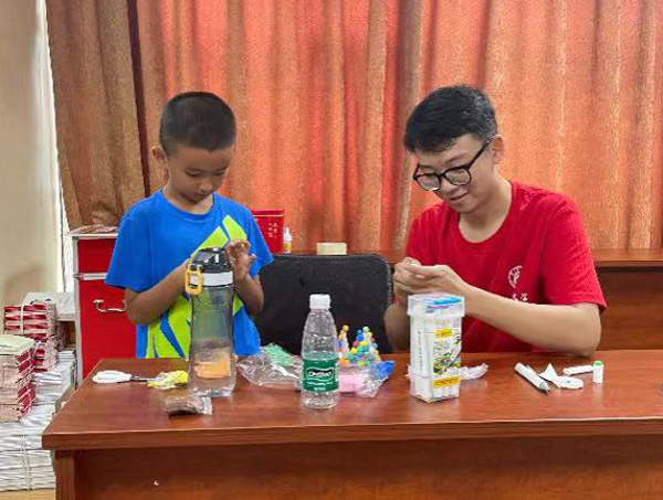 接下來進行的是有趣的“變廢為寶手工DIY”活動。小朋友們在團隊成員的幫助下,將廢紙杯做成了有價值的裝飾品,在培養(yǎng)動手能力的同時也學(xué)會了如何降低廢物量,變廢為寶。