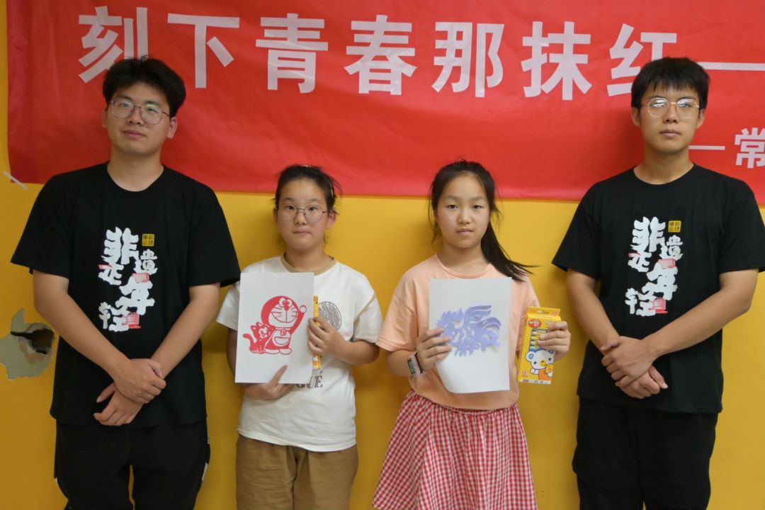 (通訊員戎雨欣)7月8日晚上18點,常州工學院電氣信息工程學院徐霞老師帶領“刻下青春那抹紅——紙上生花,踐行公益”團隊14名成員前往常州智多星藝術培訓訓中心新橋分校開展暑期社會實踐第五場活動。金壇刻紙是中國傳統的民間藝術形式,具有悠久的歷史和獨特的藝術風格。團隊希望能通過“大手牽小手”這種代際傳遞,使得刻紙技藝的傳承與發展下去。