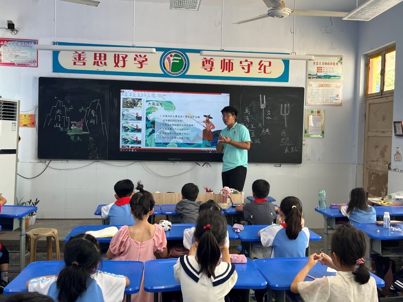 (圖為豫才支教隊開展圓夢工程中的大禹治水課程)