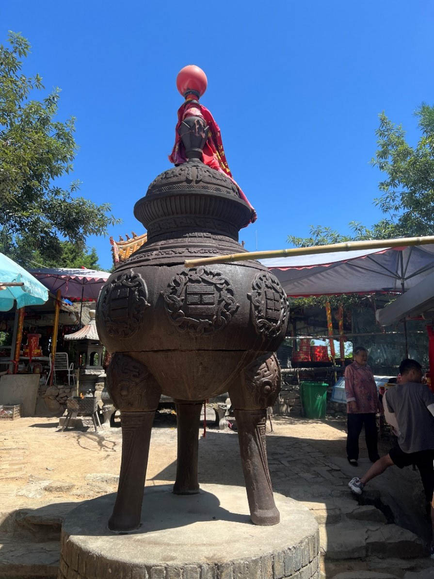 在經歷數小時的攀登后,終于到達頂峰。這座山峰不寬,小小的寺廟前擺放著約三米多高的爐子,這就是老子的煉丹爐。這里素有“天下第一福地”和“仙都”之稱,相傳說老子在此講授《道德經》五千言,并在煉丹峰煉丹修道。