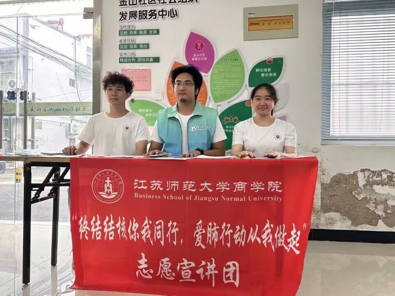 2023年7月19日,江蘇師范大學商學院“終結(jié)結(jié)核你我同行,愛肺行動從我做起”防核志愿宣講團在徐州市銅山區(qū)金山社區(qū)開展了防治肺結(jié)核專題宣傳推廣活動。