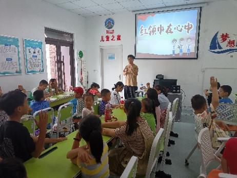 少年先鋒隊是中國少年兒童群團組織,是黨的預備隊,幫助同學們充分認識少先隊的光榮使命以及少先隊員的責任義務就變得格外重要。因此,在8月2日第三節課,支教隊隊長李翼針對性設計小學思政課程“紅領巾在心中”,通過講解列寧夫人的故事、勞動童子團以及革命兒童團等紅色革命故事,幫助同學理解少年先鋒隊的由來,性質。他還結合同學們的日常行為習慣,幫助同學們理解少年先鋒隊員的責任和義務。下課后,許多同學自覺地帶走了身邊的垃圾,整理好了桌子椅子,課程取得了良好的效果。