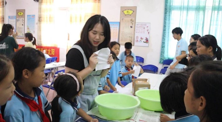 本次活動以結合實踐隊隊員的專業特長,從安全知識宣傳、美育非遺扎染、心理團體輔導等內容,為留守兒童撐起了一片“愛的天空”。經過一天的相處,隊員與孩子們在豐富多彩的活動中建立了深刻的友誼,共同度過了一段充滿愛意的快樂時光。