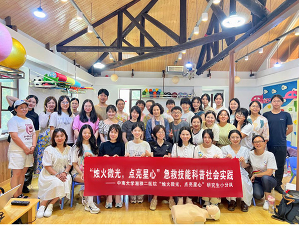 7月9日上午,實踐團的指導(dǎo)老師,中南大學(xué)湘雅二醫(yī)院護理部主任,國際危急重癥委員會委員,博士生導(dǎo)師李亞敏老師先給大家介紹了心肺復(fù)蘇的基本常識,知道“黃金救援4分鐘”的重要性,它是針對呼吸、心跳停止的患者所采取的搶救措施。隨后,實踐團成員現(xiàn)場演示如何正確實施心肺復(fù)蘇術(shù)(CPR),彩虹橋特需學(xué)校的老師們踴躍嘗試CPR的實操訓(xùn)練。實踐團成員也認真指導(dǎo)大家的操作,手把手講解技術(shù)要領(lǐng),“一對一”針對性指導(dǎo)與糾正,確保每個人能學(xué)有實效、練有所得。最后進行完整的CPR模擬演練讓老師們體驗到生死時速急救的緊迫感,加深對CPR的理解與模擬運用,更明白了急救時專業(yè)冷靜與果斷心態(tài)的必要性。