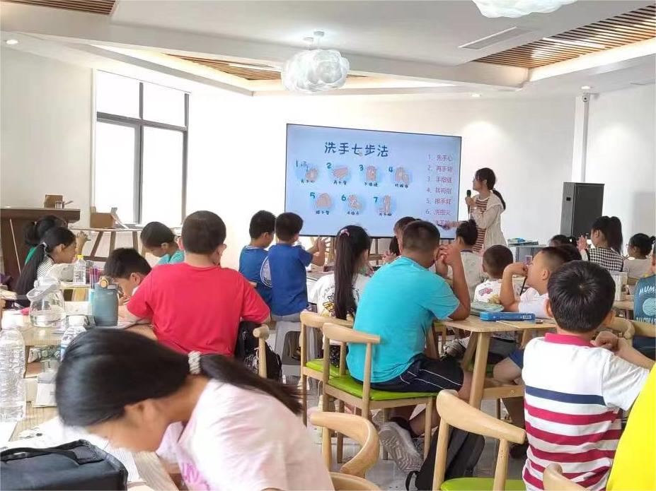 第三節(jié)課,支教隊隊員劉怡君帶領(lǐng)孩子們一起學(xué)習(xí)飲食健康。食之安全,嚼之有味。劉怡君通過介紹各種食物的主要營養(yǎng)成分,引出如何合理膳食,并強調(diào)挑食的害處,她還帶領(lǐng)孩子們學(xué)習(xí)七步洗手法。健康在一日三餐中,劉怡君接著給孩子們講述食物中毒的相關(guān)知識,享受美食的同時,更要注意健康。
