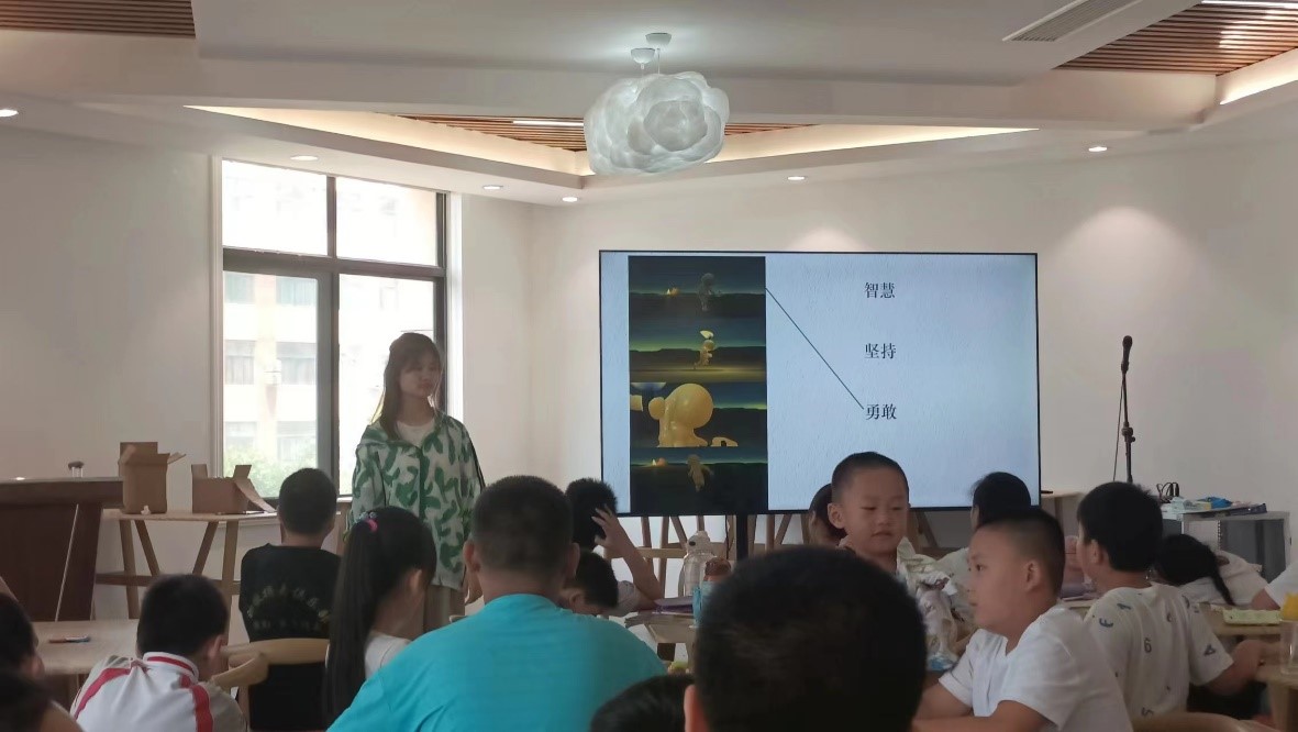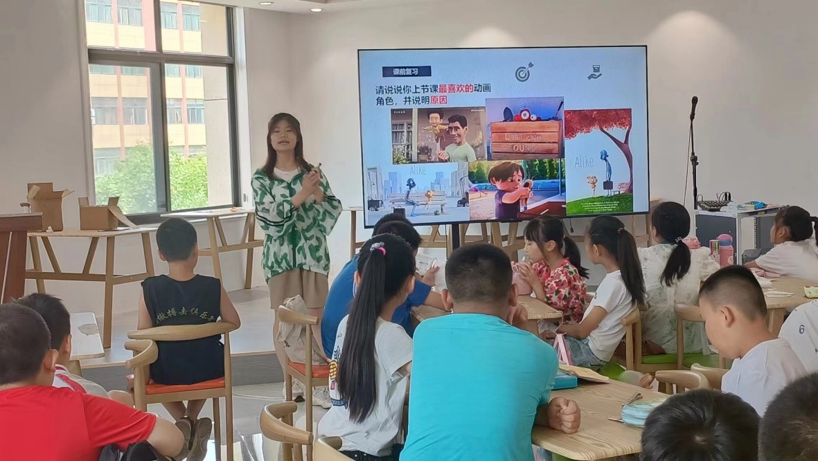 第二節(jié)課,支教隊隊員田家園為孩子們帶來了《電影賞析》第二節(jié)。首先,她帶領(lǐng)孩子們一起回顧了《失物招領(lǐng)》《飄》《相似》三部短片,隨后,她們一起觀看《兔耳袋貍》《舍與得》《蠟燭人》三個短片,在互相幫助,愛、勇氣與自我犧牲,團結(jié)奉獻中尋找生活的意義與自身存在的價值,向孩子們傳遞正能量,鼓勵他們積極向上、勇于表達自我。