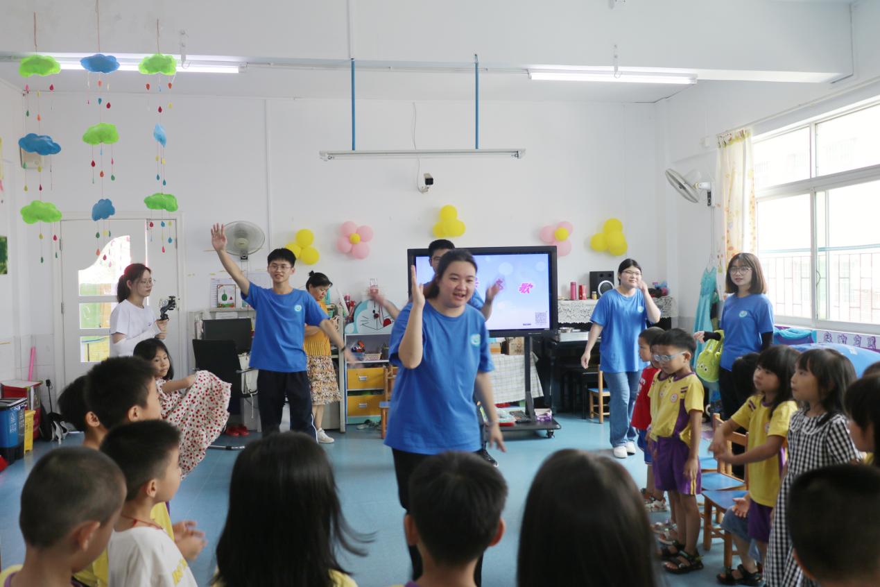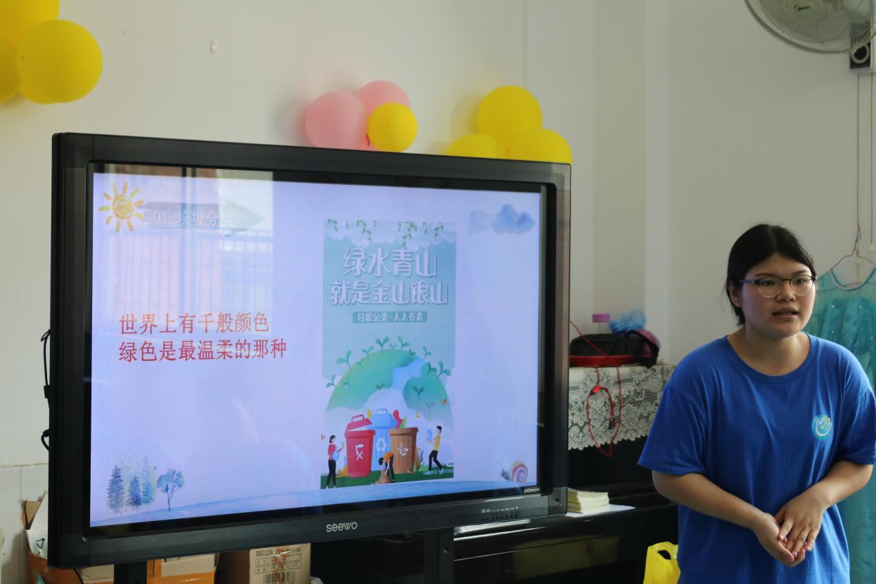 課堂開始,隊員們以“下雨”的破冰游戲,逐漸點燃現場的氛圍,迅速拉近大家的距離。團隊成員通過宣講垃圾分類知識,學唱環保宣傳歌曲以及游戲競賽等互動環節,鼓勵大家爭當環保小衛士,充分調動孩子們學習和踐行垃圾分類的積極性,使孩子們樹立起綠色環保的意識。