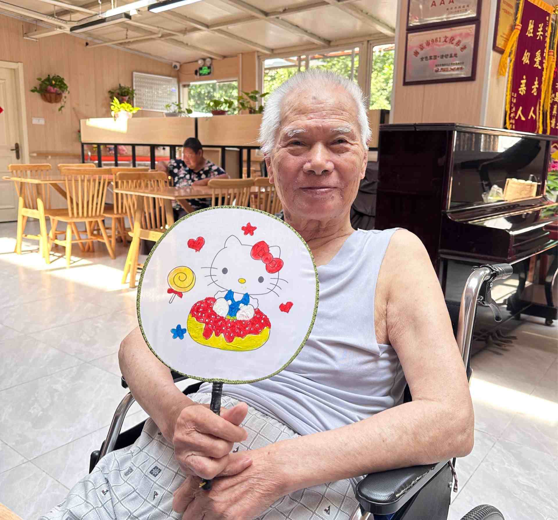 當日上午9時,服務團攜帶手工材料——“涂色團扇”,準時抵達南京市鼓樓區幸福天地老年公寓。老人們對志愿者們的到來都表示欣喜與歡迎,敬老院的負責人姐姐也熱情地迎接志愿者們,并對此次活動內容表示十分驚喜與認可。志愿者們即刻分發手工材料,老人們也對涂色團扇很感興趣,積極參與進來,其中一位黨員爺爺近90歲高齡,涂色最是認真細致,這也體現了黨求真務實的精神。另幾位奶奶對此次活動也展現了百分百的熱情,在團扇涂色完成的時候,臉上都洋溢著自豪的笑容。