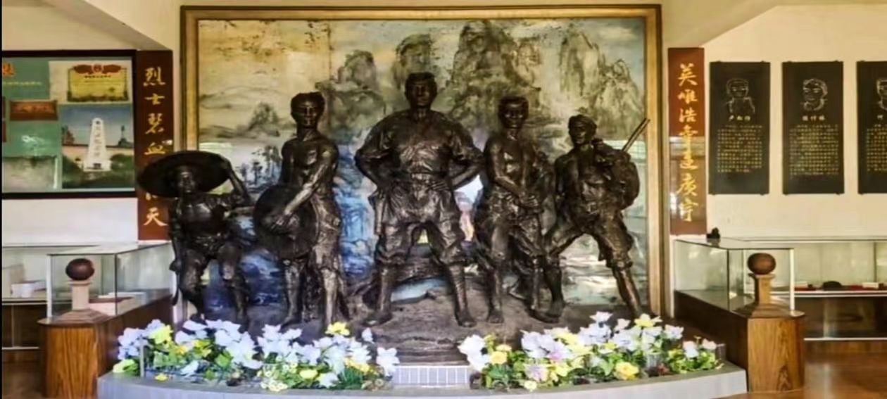 追溯紅色記憶,緬懷革命先烈為了解觀珠鎮(zhèn)當(dāng)?shù)氐臍v史文化,“溯記憶,行使命”實(shí)踐隊(duì)于9日下午前往電白旱平革命英烈紀(jì)念館進(jìn)行參觀。實(shí)踐隊(duì)隊(duì)員們通過紀(jì)念館負(fù)責(zé)人的指引,打開了頗帶銹跡的門鎖。推開大門,映入眼簾的是處于館內(nèi)正中央的五烈士雕像,雕像的姿勢(shì)表現(xiàn)出烈士們不懼一切,敢于赴死的卓越英姿。雕像的腳下附近規(guī)律地排放著村民們舉行紀(jì)念活動(dòng)時(shí)所獻(xiàn)上的花籃,后方掛著五峰山的風(fēng)景畫,旁邊整齊排列的瓷磚上刻著五烈士的畫像和生平事跡。館內(nèi)的玻璃柜里擺放著的烈士遺物,遺言信封等物品。
