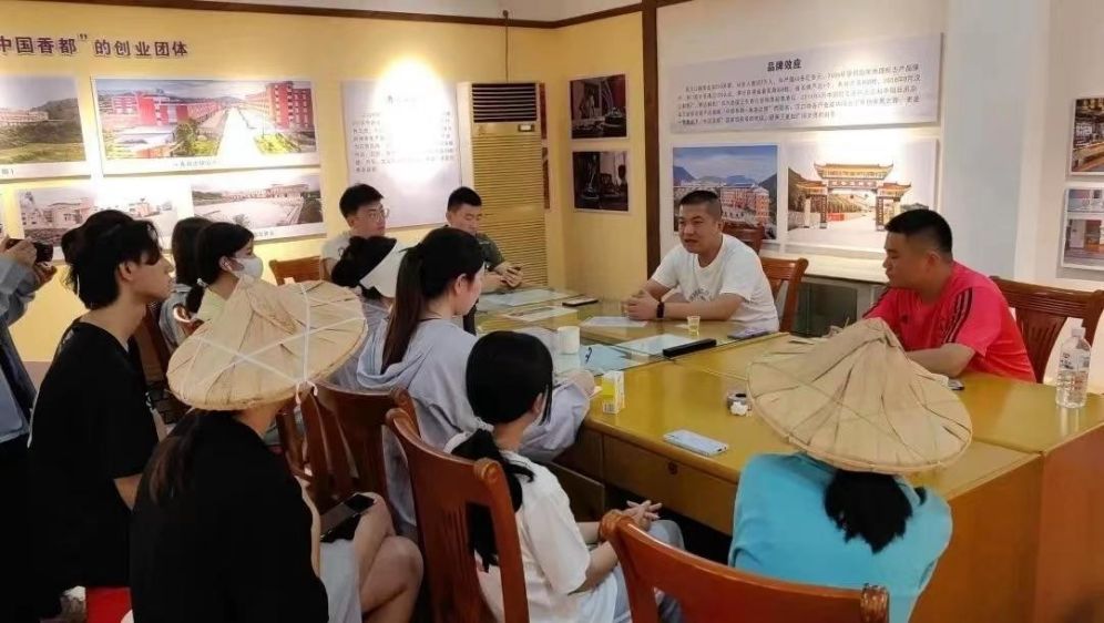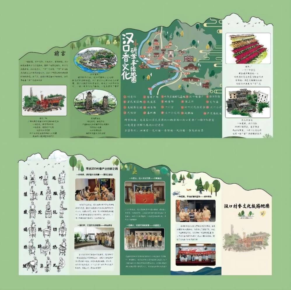 圖9-參訪彬達香業目前,漢口村準備將香文化推廣與產業進行多元融合,探索轉型升級的道路,將香文化體驗與手工研學相互結合,讓香文化揚名海內外。團隊將漢口村的研學過程制作成香文化研學地圖,并通過視頻拍攝景點剪輯成一部活動過程紀錄片,并通過字幕講述每個節點背后的故事和內容,展現香廠的加工制作流程,傳播和推廣漢口香文化的歷史。力爭通過本次藝脈“香”傳工作坊活動推廣達埔鎮漢口村香文化,助力漢口村香產業發展。