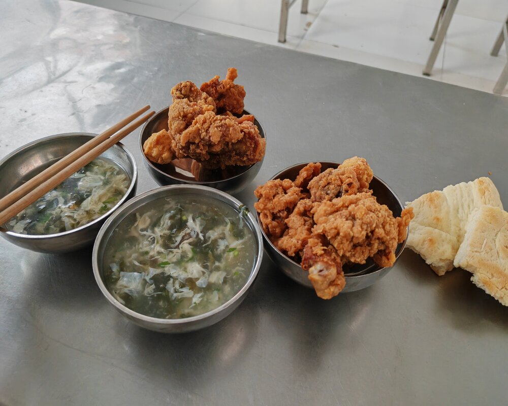 不僅如此,食堂還給他們留著晚飯,大塊的炸雞和紫菜湯,還是王叔叔做的熟悉的味道,他們笑著吃著,真心地感覺到回家啦!