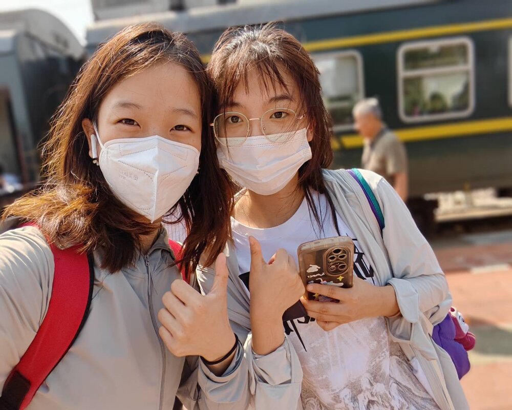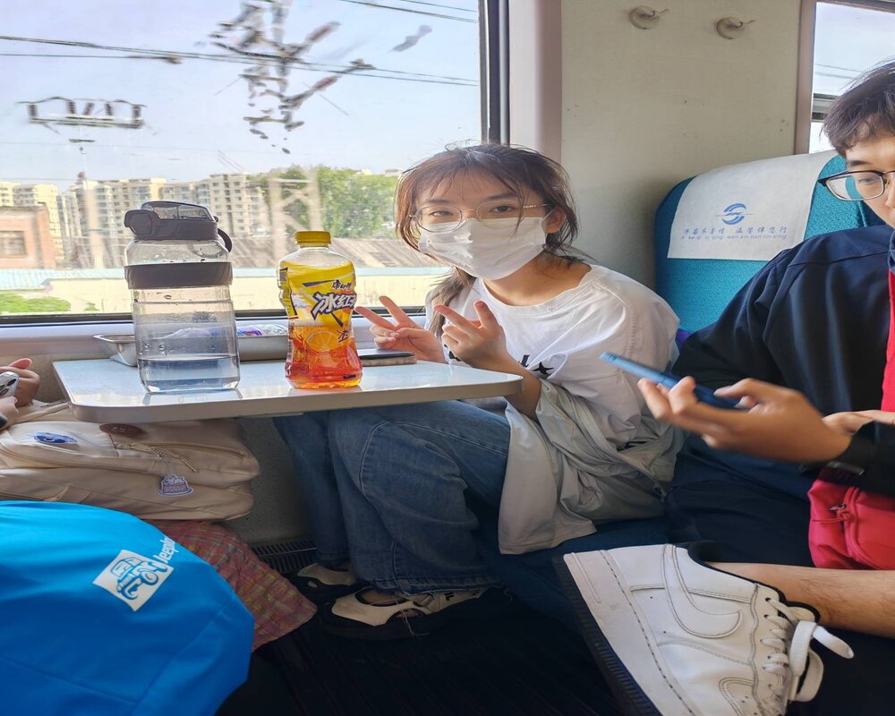 隊員潘璐彤和劉欣然是一年多前支教過的老成員,還沒到臨沂就收到了志愿者們熱烈的關心,從車站出來看到臨沂的天空湛藍,他們腦海里回響著學生金航的那句歌詞“請相信我們明天一定會再見,就像白云離不開藍天”。