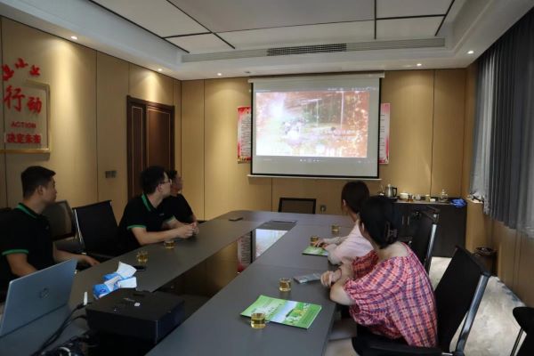 圖為負責人與調研人員共同觀看宣傳視頻的場景 多彩大學生網通訊員 劉姝均 供圖