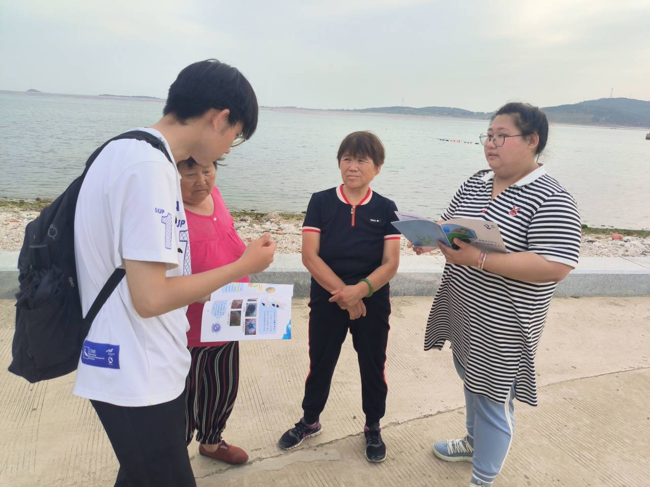 其次,實(shí)踐隊(duì)從什么是海草床,海草床面臨哪些挑戰(zhàn),對(duì)如何修復(fù)海草床問(wèn)題與村民展開(kāi)交談。海草床是全球重要的碳庫(kù),具有強(qiáng)大的碳捕獲和碳封存能力,低分解率和相對(duì)穩(wěn)定性使其對(duì)碳的封存可達(dá)數(shù)千年,對(duì)海洋生態(tài)系統(tǒng)的保護(hù)有著舉足輕重的作用。實(shí)踐隊(duì)希望通過(guò)科普使村民認(rèn)識(shí)到海草床的重要性,提高海草床保護(hù)意識(shí),管控污染物排放,改善海草床生境質(zhì)量,拒絕傾倒垃圾、排放污水、托底作業(yè)、人為破壞。