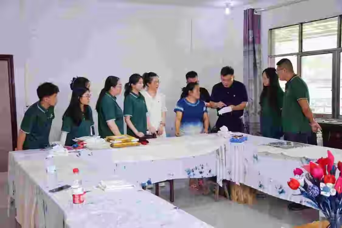 楓香印染守技藝,產品銷售上云端楓香印染是河壩瑤族傳統手工技藝,是瑤族同胞的文化智慧。在國家非物質文化遺產楓香印染的傳統制作工坊,實踐團訪談了縣級非遺項目瑤族服飾代表性傳承人曹頂秀,深度了解國家非物質文化遺產楓香印染的傳統制作工藝手法,動手體驗了從畫花、點蠟、印染、脫蠟及晾曬的楓香染手工藝品制作全過程,零距離感受技藝中的工匠精神,品味非遺文化的獨特魅力。當地產業發展助推鄉村振興的同時也激發了村民們學習普通話的熱情,在苗繡培訓基地,依托當地豐富的非遺資源和深厚的文化底蘊,開展普通話能力提升專項培訓,通過情景對話模擬等方式,將產品介紹、電商直播等生活化場景有機地融入到培訓當中,提升繡娘們語言文字應用和用普通話打開新的銷售市場的能力,讓“非遺產品”銷售上“云端”,民族傳承的路更寬。