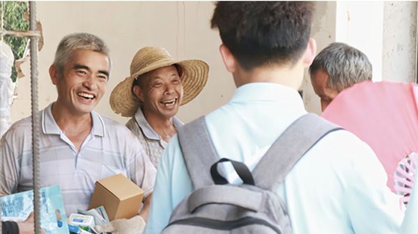 在鄉政府工作人員的帶領下,隊員們走村入戶,咨詢村民的身體狀況,為他們答疑解惑,給他們發放解暑茶和藥品,仔細講解藥品的使用注意事項及方法,將實踐服務送進村民家里、送到村民心中。