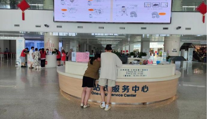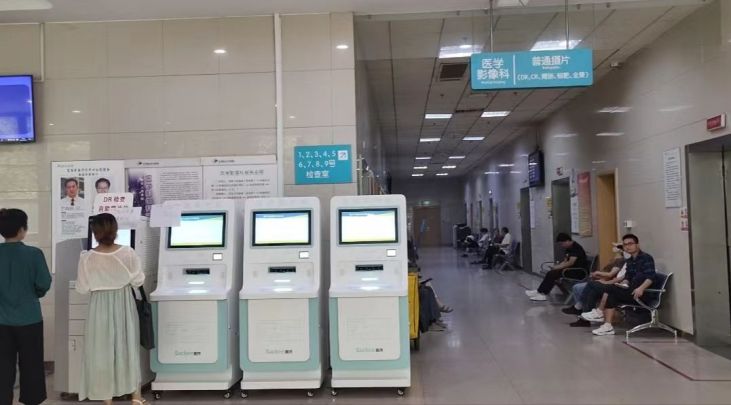緊接著,隊員們前往了稍遠一些的無錫市人民醫院,實地走訪發現人民醫院的門診設有整排的自助服務設備,人工窗口雖然也有很多但同二院一樣也不是24小時開放。整體上醫院人工和電子化服務都很豐富,有利于分流就診人群,高峰期提高效率,但門診部未見分診導診臺或工作人員,電子化機器只靠患者自己進行操作,對老年人不友好;醫院指引牌指引標識豐富,尋找科室很方便,但醫院科室分散,路程遠,對身體非常不適的患者來說相對不太友好。引入陪診服務在此類大型醫院能夠協助患者完成掛號取報告等操作,大醫院范圍臺大陪診也能代替患者跑腿,“陪”的也許不僅僅是個流程,更能提供生理上的幫助和心理上的安慰。
