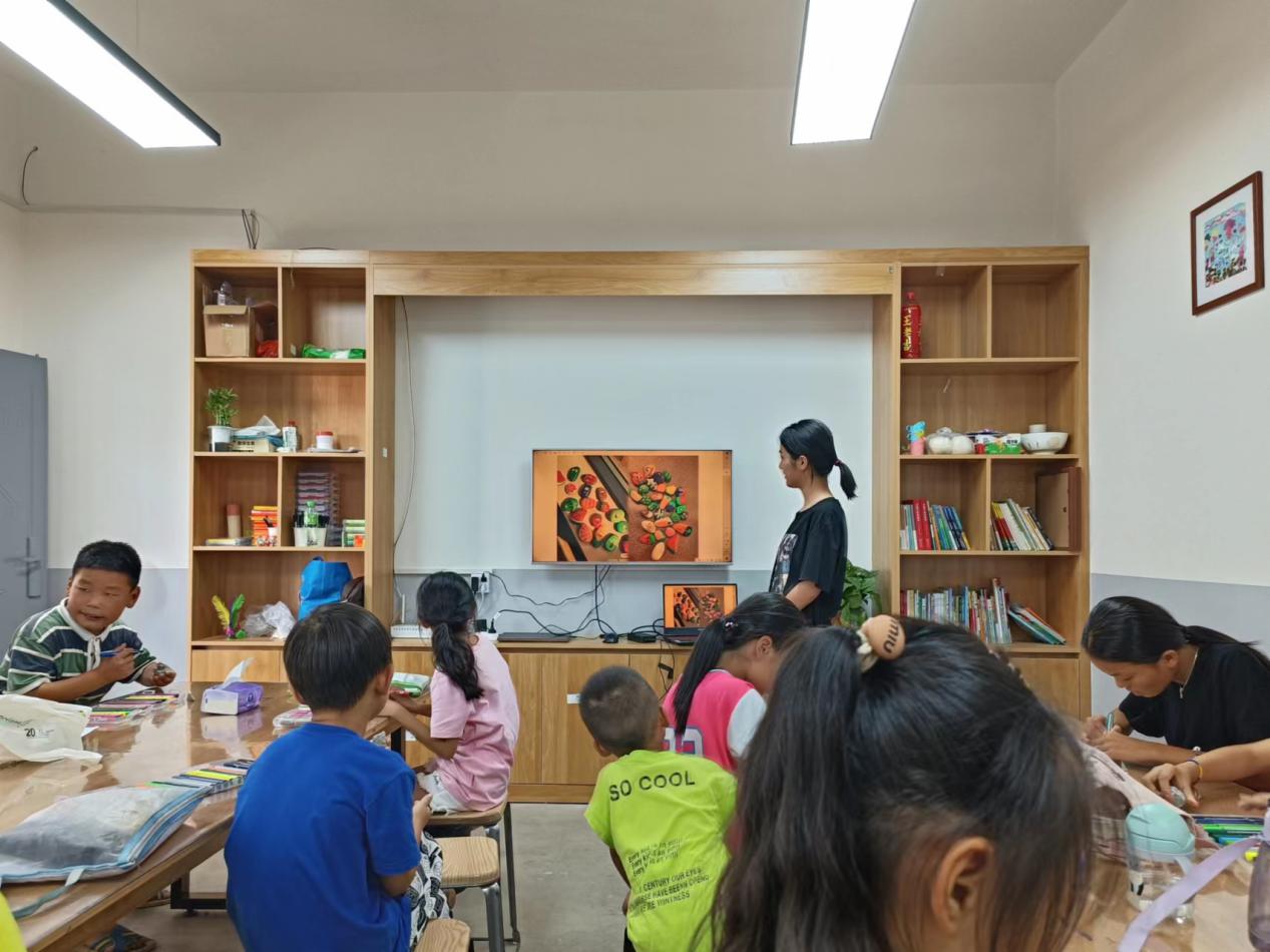 團隊成員不僅認真教給孩子知識和學習方法,還與孩子們建立了親密溫馨的關系。事實無人撫養兒童長時間缺少父母的陪伴和關愛,內心較為脆弱敏感。團隊成員十分重視提升孩子們的心理素質,教學和活動的開展都注重跟心理健康教育工作相結合,引導孩子們形成樂觀開朗的性格。隨著支教活動的推進,團隊成員與孩子們之間變得越來越熟悉,關系也越來越親密。孩子們慢慢敞開了心扉,變得樂觀、陽光。