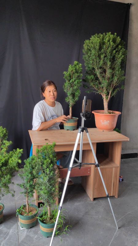 在與胡書記的交流中,成員們了解到雙蕩村有近400年的花木種植歷史,是“虬爪燈臺漁網扣,懸枝掛膀云片飄”沭派盆景主產區之一。沭陽盆景技藝也被列入第四批市級非物質文化遺產名錄。一些年紀大的村民不會做直播,也會幫忙包裝發貨,真正做到了家家做電商,戶戶有事做,家家有錢賺。近幾年,國家的一些重點大學的人才都會回來做電商,推動了鄉村振興。