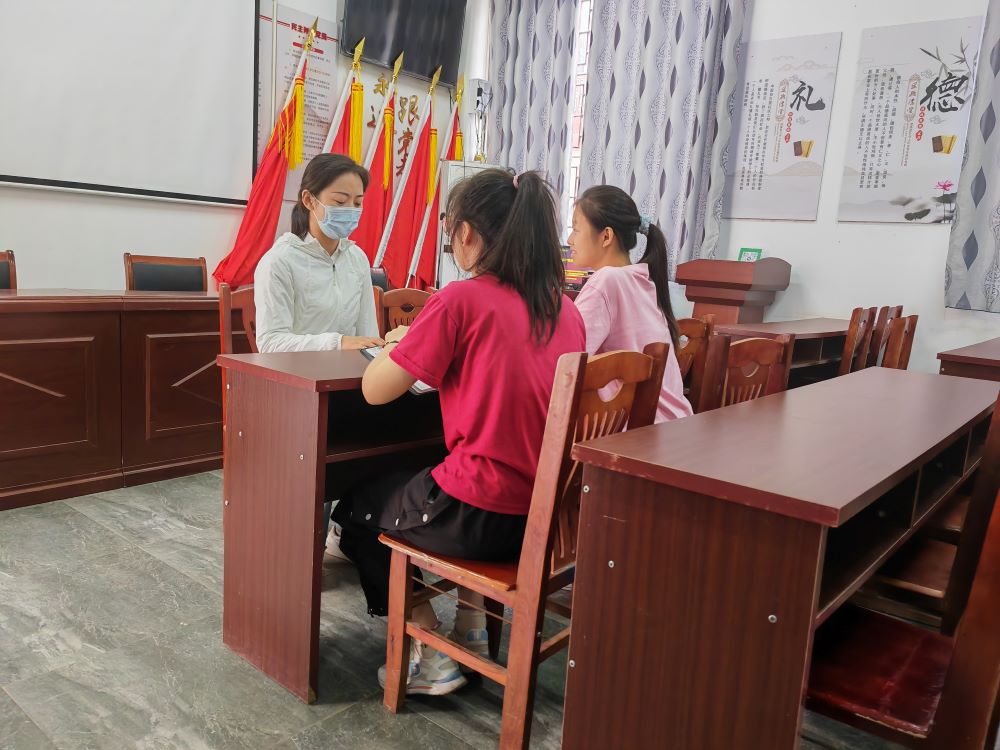 圖為小隊成員采訪雙蕩村黨總支副書記李敏