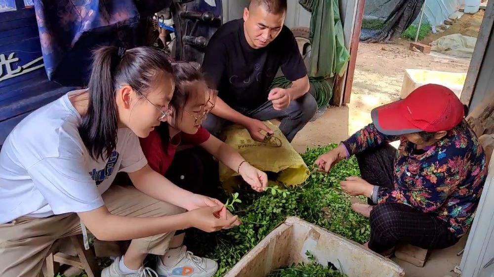 圖為小隊拍攝花農直播銷售紅豆杉