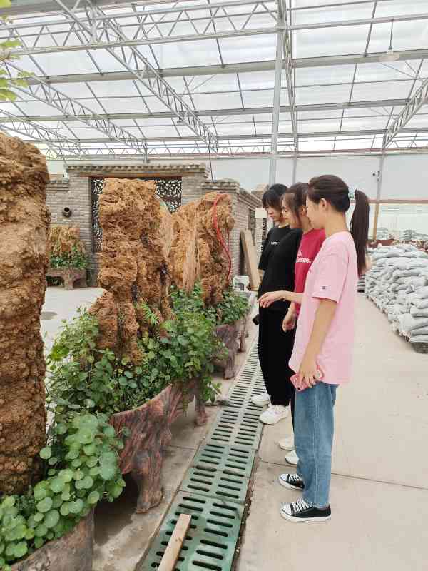 實踐團成員在參觀過程中看到了各式花木盆景,包括羅漢松、文竹、日本五針松……應有盡有,不計其數。“花木之鄉”正是以這些盆景為底蘊,以電商銷售為渠道,促進沭陽經濟的大發展。此外,愛花之人多愛裝飾設計自己的養花之所,以假山、怪石、奇泉來點綴。因而花木產業也帶動了奇石景觀、園林設計共同發展。