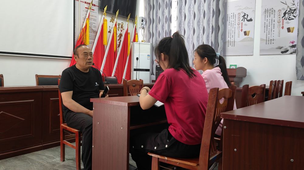圖為小隊成員采訪雙蕩村黨總支書記胡方喜