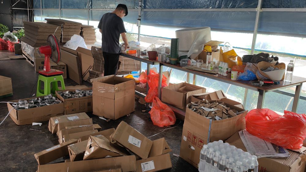圖為小隊拍攝花農包裝花木場景
