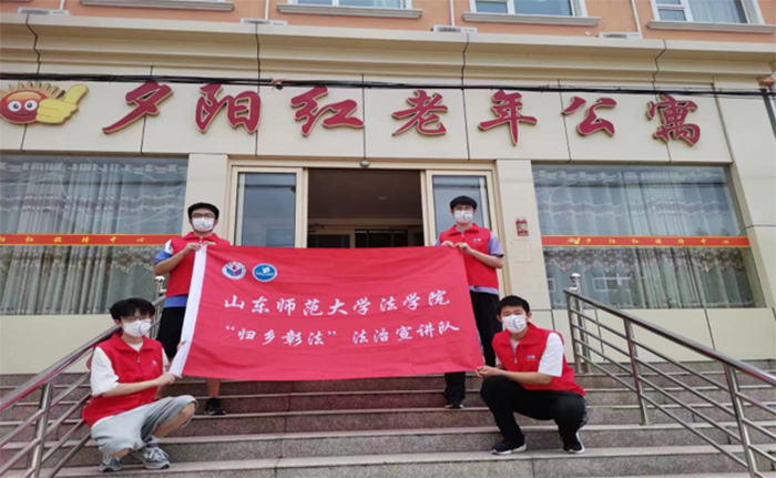 為進(jìn)一步加大普法宣傳力度,提升群眾法治素養(yǎng),提高群眾依法維權(quán)能力,充分發(fā)揮新時(shí)代文明實(shí)踐的引領(lǐng)帶動(dòng)作用,著力提升公共法律服務(wù)水平,尤其是對老年人這一弱勢群體。山東師范大學(xué)法學(xué)院“歸鄉(xiāng)彰法”法治宣講隊(duì)來到青島市即墨區(qū)夕陽紅老年公寓進(jìn)行調(diào)查老年人對法律的認(rèn)識(shí)并進(jìn)行法治宣講活動(dòng)。