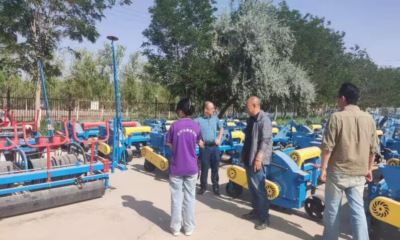 下午,實(shí)踐團(tuán)前往新疆阿拉爾市金準(zhǔn)機(jī)械裝備有限公司進(jìn)行參觀學(xué)習(xí),了解了兵團(tuán)農(nóng)業(yè)機(jī)器的普及率、價(jià)格、使用方法等情況。
