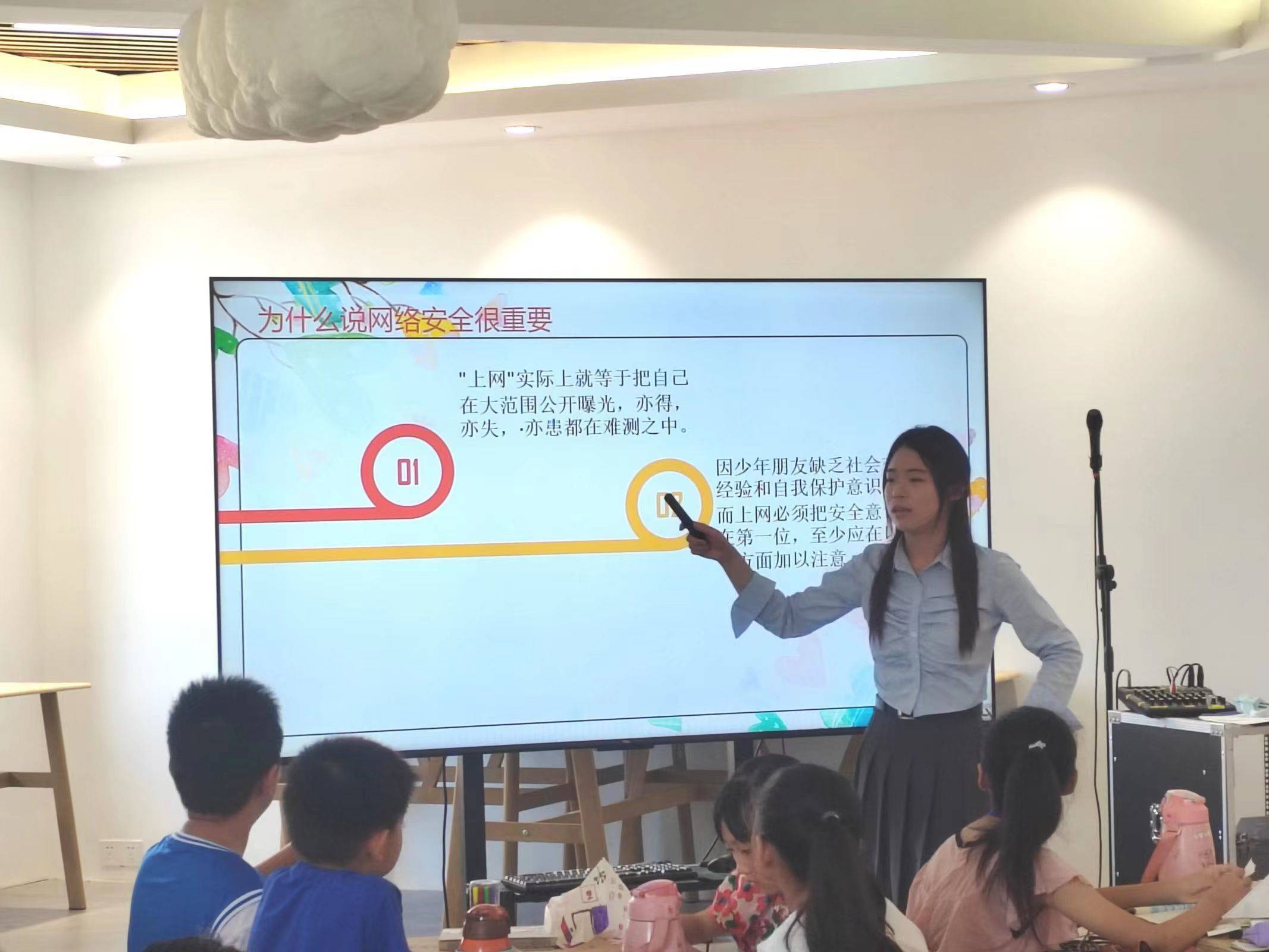 網絡空間是億萬民眾共同的精神家園,網絡大面積普及產生便利的同時,也讓學生接觸到了短視頻、游戲并沉迷于此,網絡安全教育刻不容緩。支教隊隊員王雪通過“尋找手機密碼”游戲引入課堂,調查學生刷視頻、打游戲的時間安排,循序漸進,讓學生了解到沉迷手機的危害,如視力下降、成績下滑等等,并指引學生合理安排上網時間。